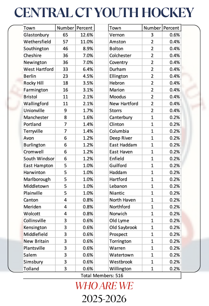 CCYHA is made up of 516 members coming from 70 different towns