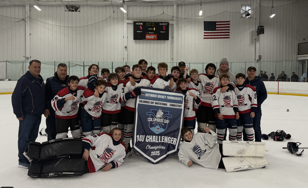 Congratulations to our U14 AA team on capturing the Cup Division Championship at the Defender Tournament. Our U14 AA team went 4-0 in the opening round outscoring their opponents 20-7. The U14's capped off the weekend by defeating the PAL Sound Tigers 5-0 in the championship game. Congratulations to players and coaches.